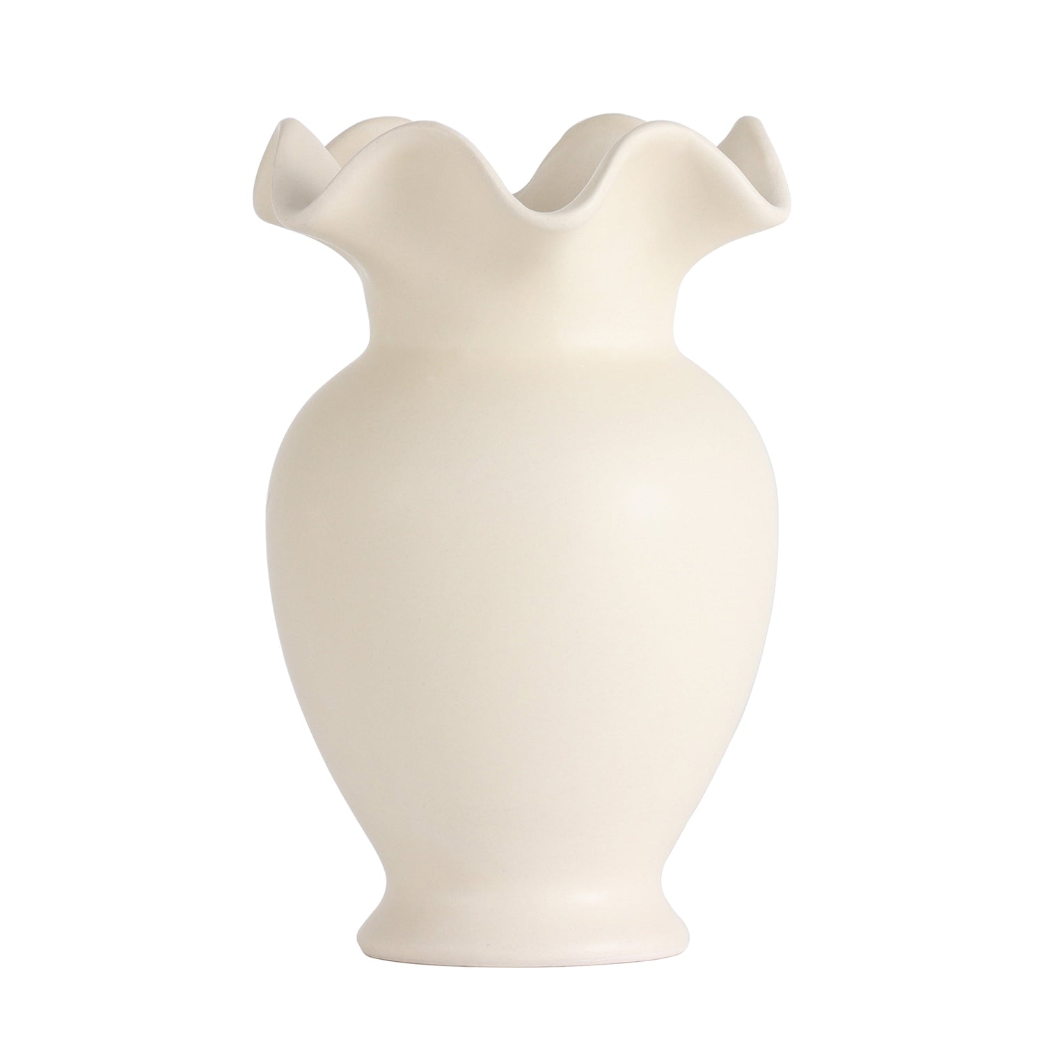 Home Ruffle Shaped Off-White Ceramic Indoor Tabletop Vase