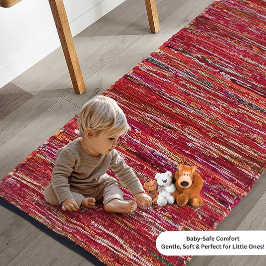 Cotton Chindi Runner Rug - 2X6 Ft Multi-Color, Bohemian Farmhouse Runner for Living Room, Bedroom, Hallways, Patio, and Kitchen | Soft Decorative Floor Carpet - 24X36 Inches